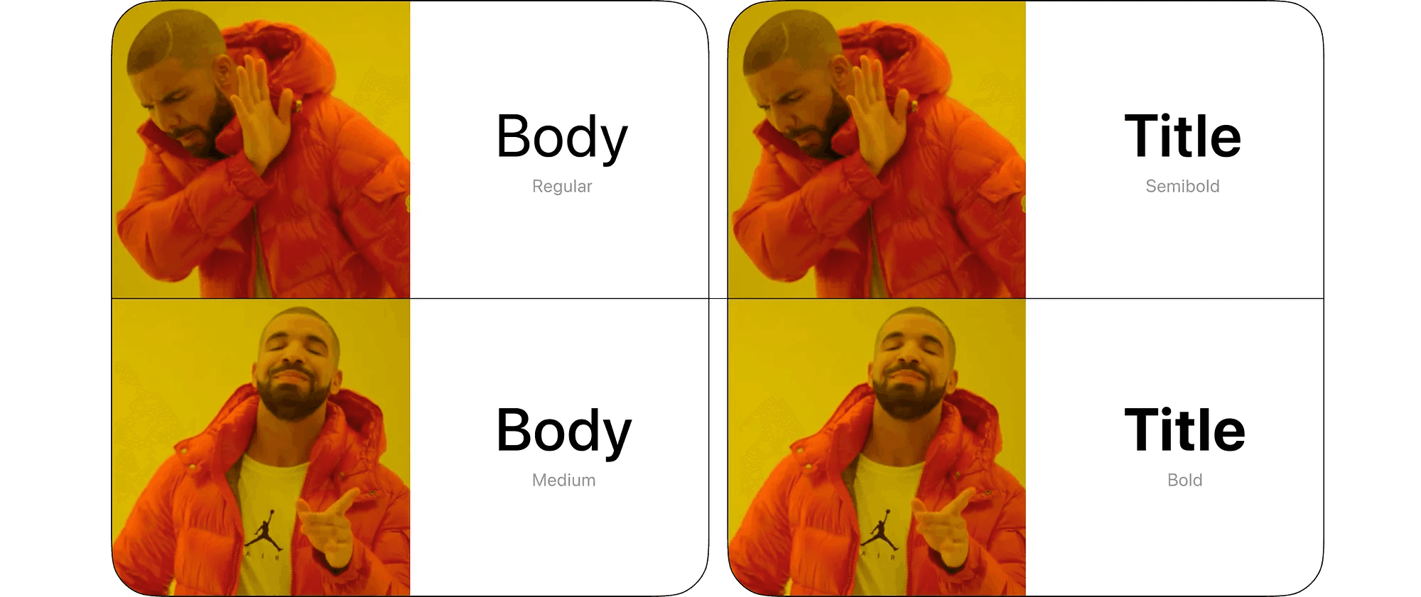5. Use bolder font weight for better visibility and legibility : For the Vision Pro Apple has increased their body font from regular to medium and Title from semibold to bold. You can do the same if you are experimenting with other fonts.