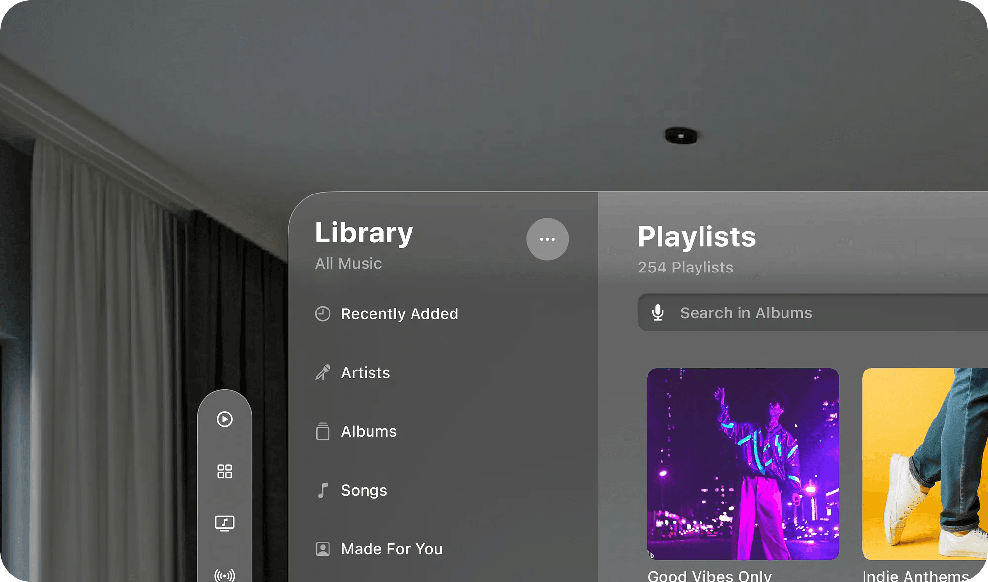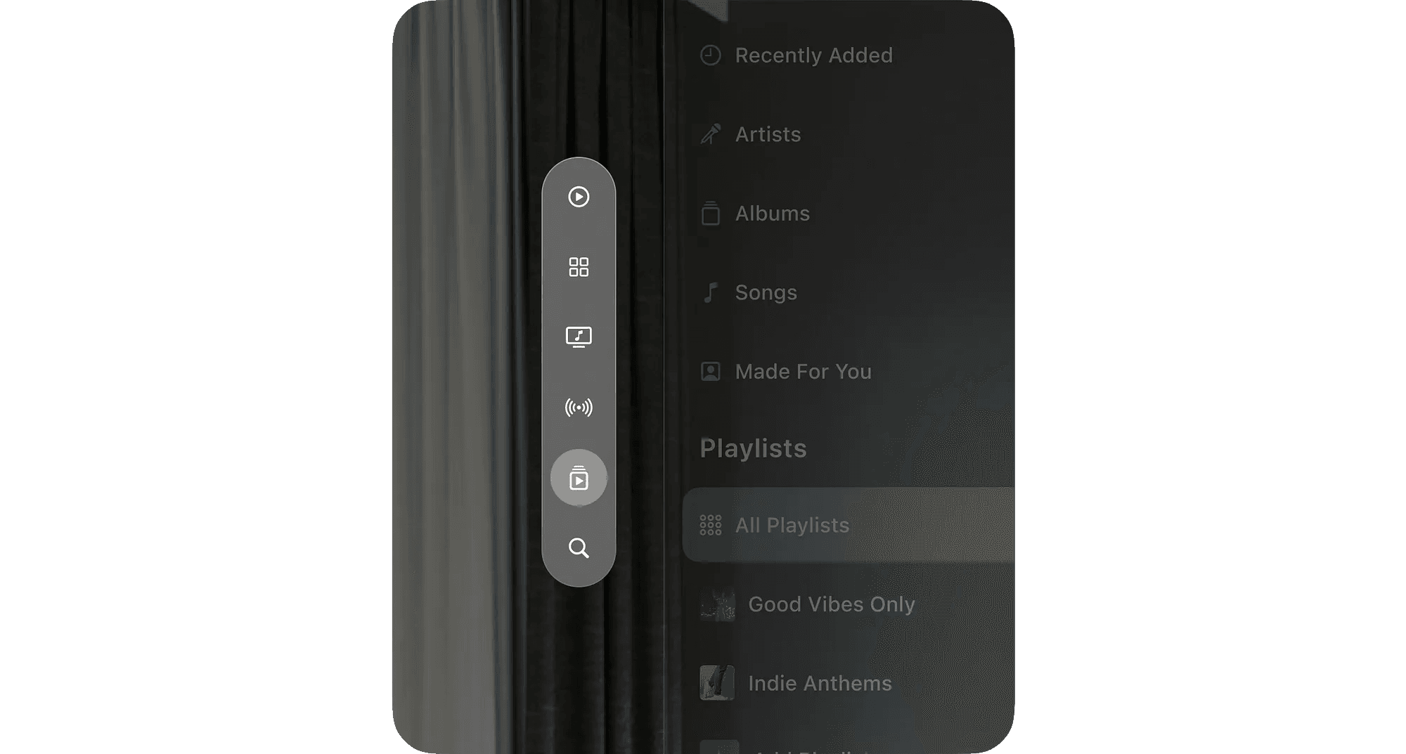 12. Avoid having more than six items on the tab bar ; Purpose of the tab bar is same as the purpose of the tab bar or bottom navigation on a mobile device ie: to give users quick access to the top level section of your app with a single tap. The tab bar on the Vision Pro is vertical and does the same. It is meant to be light and out of the way.
