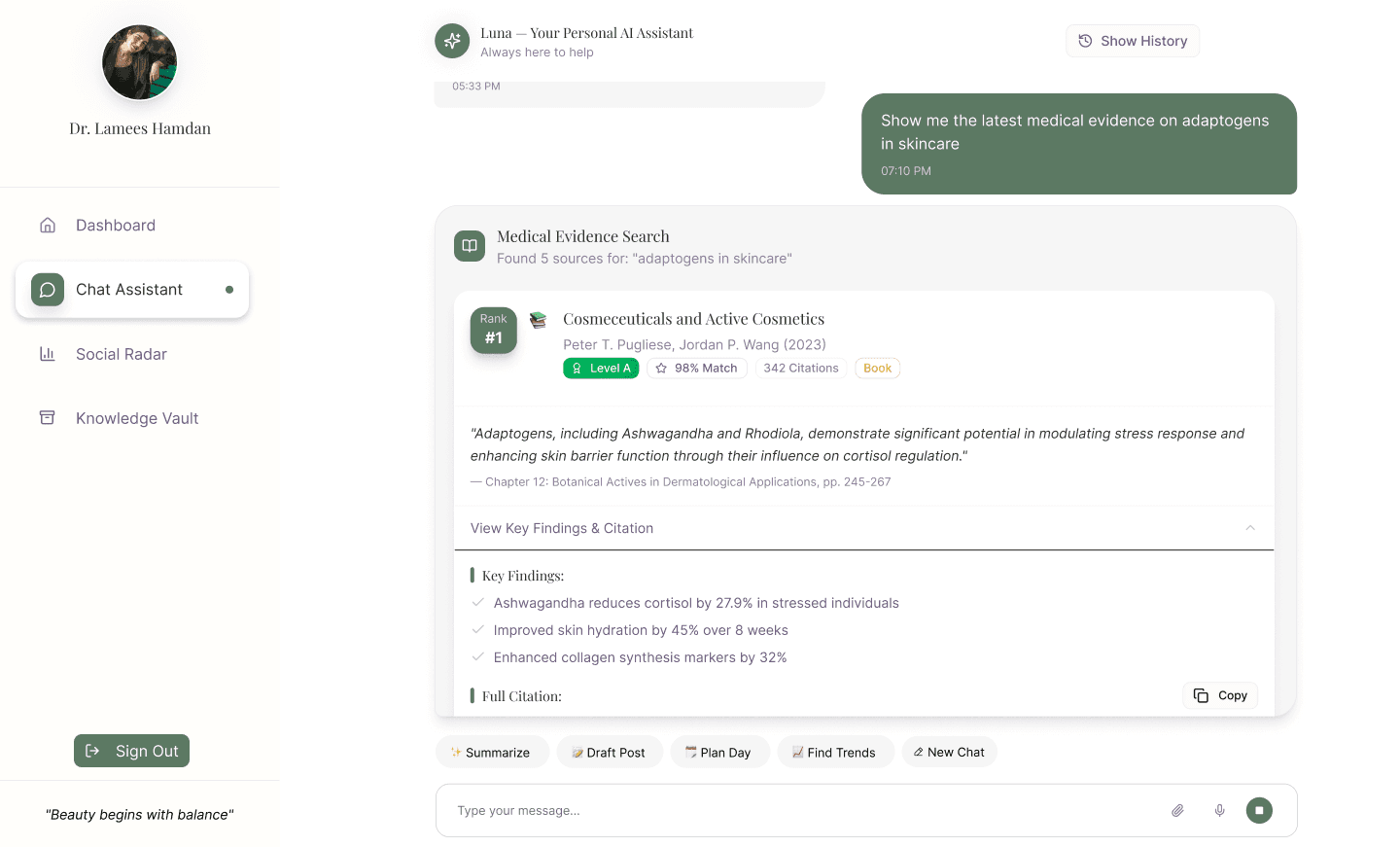Project Overview: Luna AI is a personal medical chat application designed to support doctors in the UAE by helping them educate patients, manage medications, track symptoms, and make informed clinical decisions—while maintaining strict medical safety, privacy, and ethical boundaries. This case study explores how we designed a trustworthy AI health assistant for UAE-based physicians while navigating the regulatory, cultural, and ethical considerations of medical AI in the region.