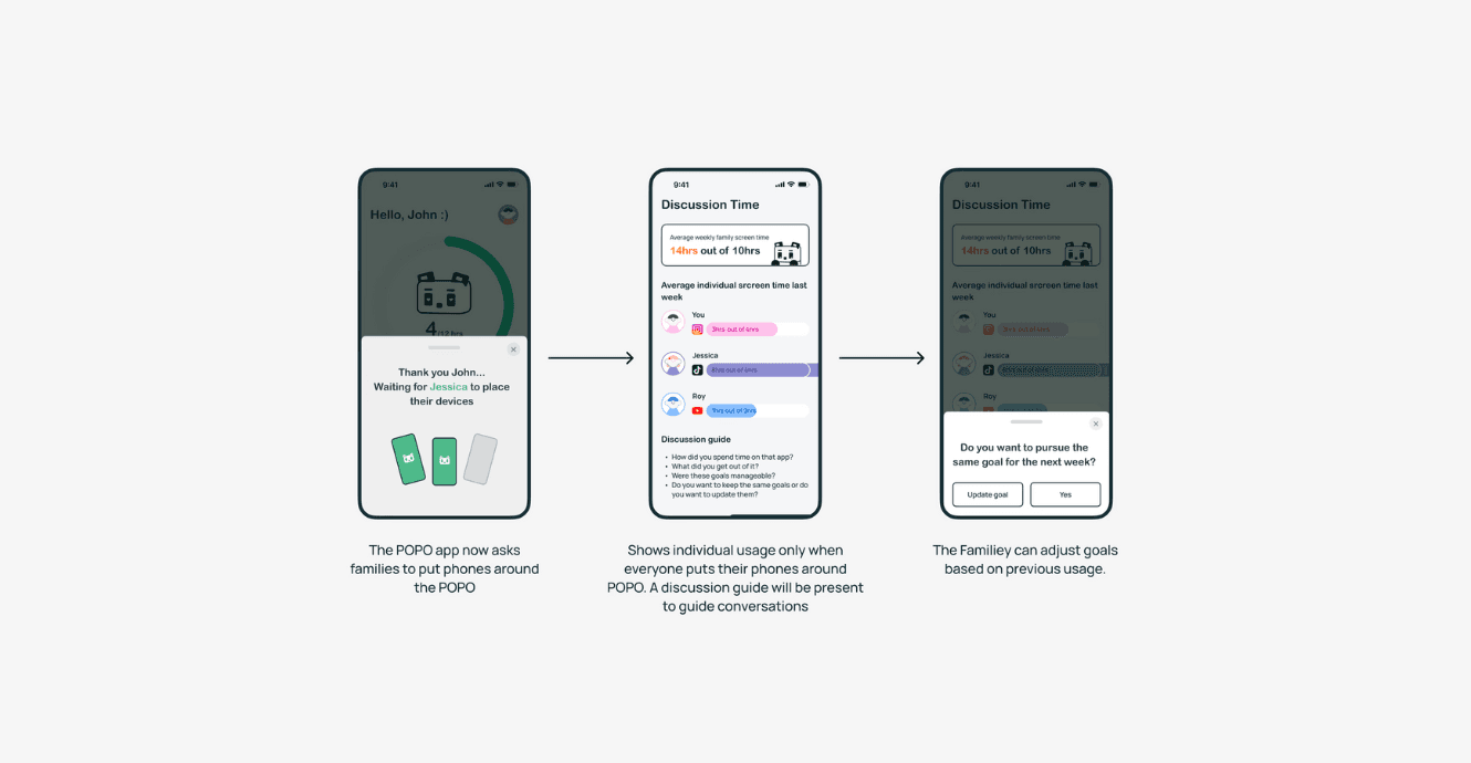 POPO is designed to help initiate discussion between members of a family about their device use.